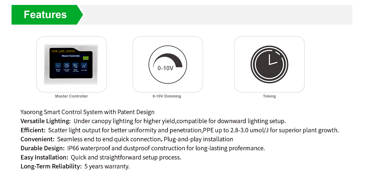 Energy saving, Instant start, NO flickering, NO humming, long service life, increase hemp output.